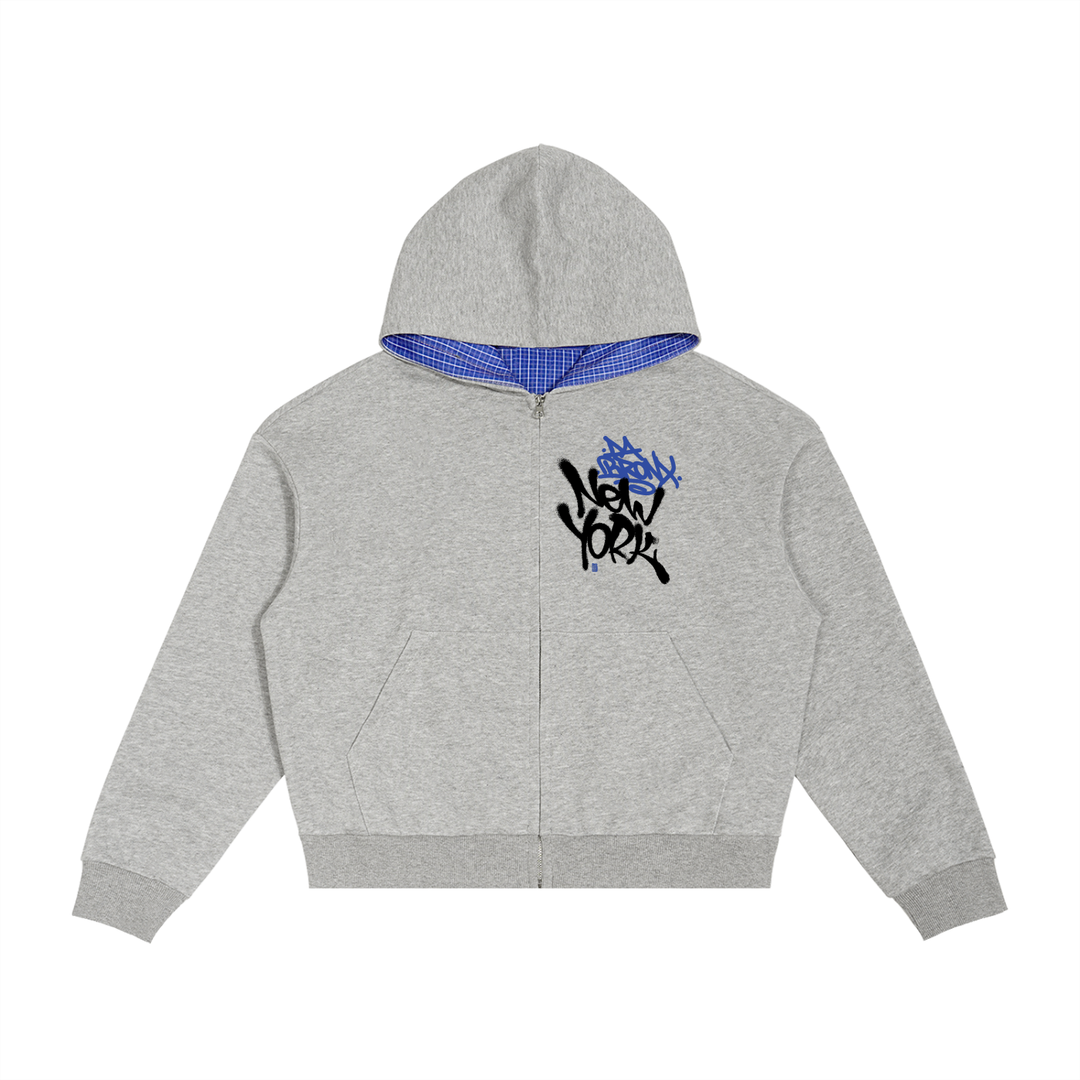 Da Bronx Boroughs Contrast Plaid Boxy Zip Hoodie