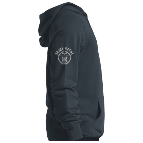 Black hoodie with 'Bronx Native' text and logo on a white background